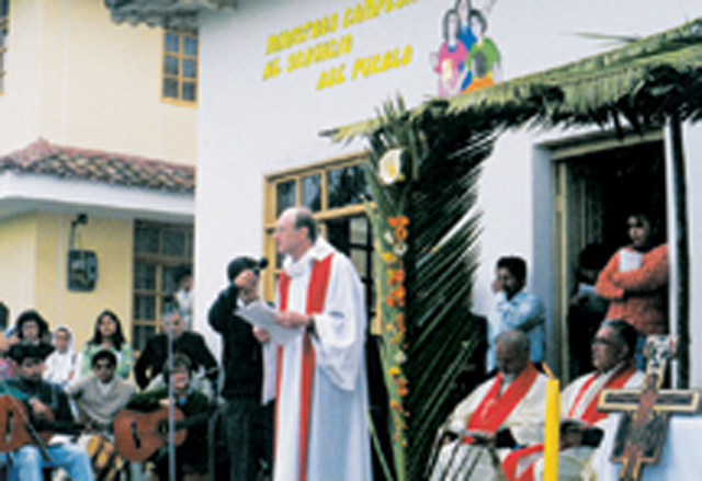 Scarboro missionary Fr. Frank Hegel, director of Christ the Good Shepherd Seminary, at the offical blessing of the seminary, April 1999, once the new wing was completed in the Town of chambo, in the Diocese of Riobamba, Ecuador