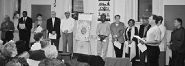 The evening of the Golden Rule poster launch climaxed with a Golden Rule prayer service in which the 13 sacred writings featured on the poster were recited by representatives of 11 faith traditions.