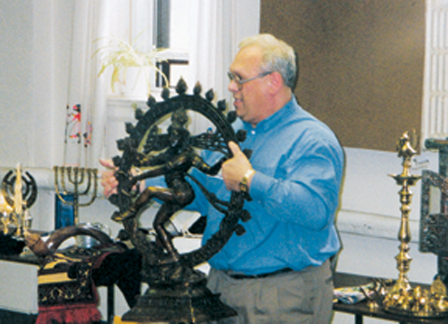 Larry Windland of the Encounter World Religions Centre in Guelph, Ontario, displays and explains sacred objects from the world’s religions.