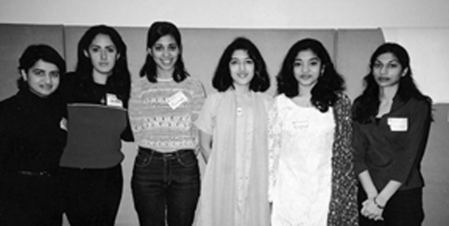 Multifaith youth panel at Toronto Baha’i Centre. L-R: Mona Kothari (Jain) Gloria Arjomand (Baha’i), Farrah Miranda (Christian) Lakshmi Viswanathan (Hindu), Rasagnya Rao (Hindu), Manpreet Jaswal