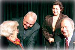 R-L: Honourable Monte Kwinter, Minister of Community Safety and Correctional Institutes: Ms Rose Buhagiar, Superintendent of Toronto’s East Detention Centre: Gary Commeford, Asst. Deputy to Mr. Kwinter: and Sr. Elaine MacInnes at the launch of Fires That Burn, an award winning documentary about the work of teaching yoga and meditation disciplines in prisons.
