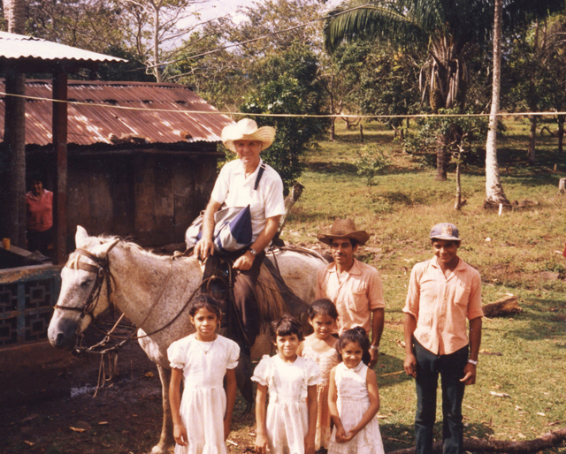 Fr. Joe Curcio visits with peasant farmers in Nicaragua. Fr. Curcio also served in the Dominican Republic and among Native peoples in Canada.