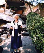 Above: Sr. Mary Alban Bouchard of the Sisters of St. Joseph stands in front of her severely damaged home.