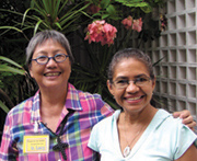Sr. Lucy Lee with her friend Lenha who learned craft skills from Sr. Lucy and now supports herself by making hand decorated flip-flops.