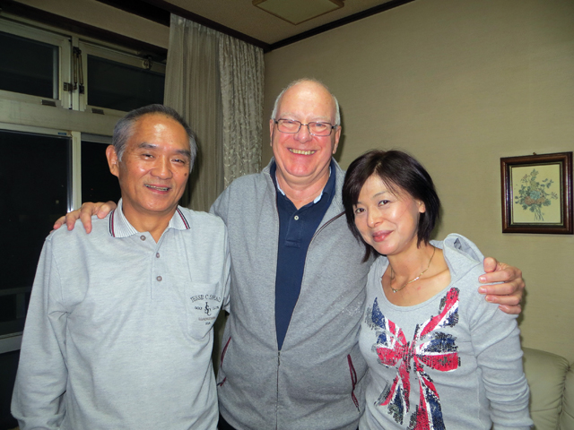 Fr. Carten with Hisao and Kyoko Igimi, non-Christian friends that he has known for more than 35 years and who have welcomed him as part of their family.