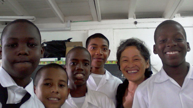 Donna Joy Tai with some of her Bosco boys from the St. John Bosco Orphanage and Bosco Academy where she teaches Spanish and assists with after school reading.
