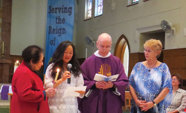 At her missioning ceremony on March 16, 2013, Donna Tai made her one year commitment as a Scarboro missioner. Photo left: Donna with her mother, Fr. Brian Swords and lay missioner Mary Olenick. In her statement, Donna said: