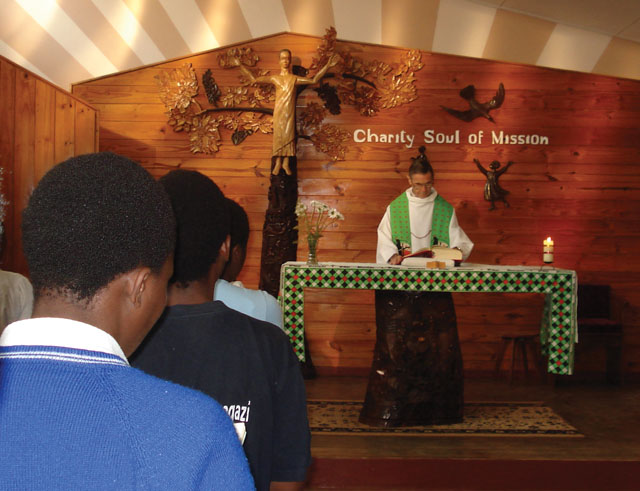 Fr. Jim McGuire celebrates the Eucharist at Marymount Catholic Secondary School, an all girls boarding school. Malawi.