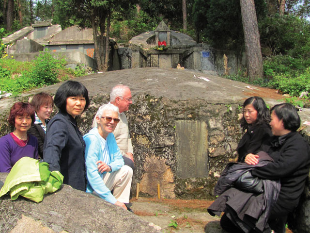 Members of the Catholic community in Lishui accompany lay missioner Louise Malnachuk and Fr. Mike Traher at the grave of Fr. Paul Kam (photo above left), the first seminarian of the China Mission Seminary (precursor to Scarboro Missions).