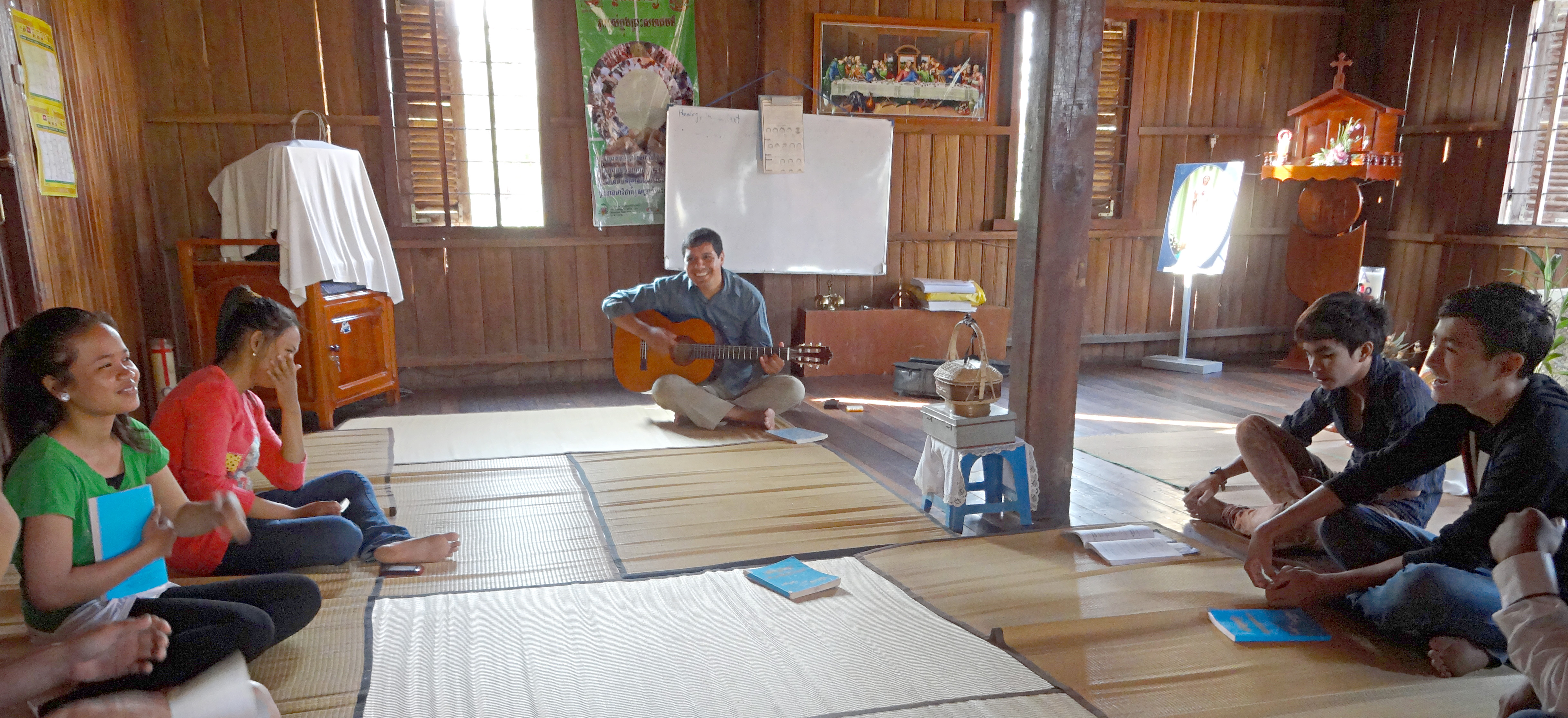 Fr. Ivan with young people in the mission parish of Kdol Leu, Cambodia. Photo by Fr. Jack Lynch, SFM.