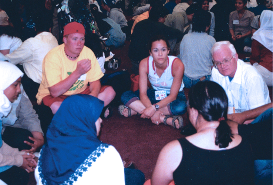 A multifaith sharing organized for high school students by the Scarboro Missions Department of Interfaith Dialogue. World Youth Day, 2002, Toronto.